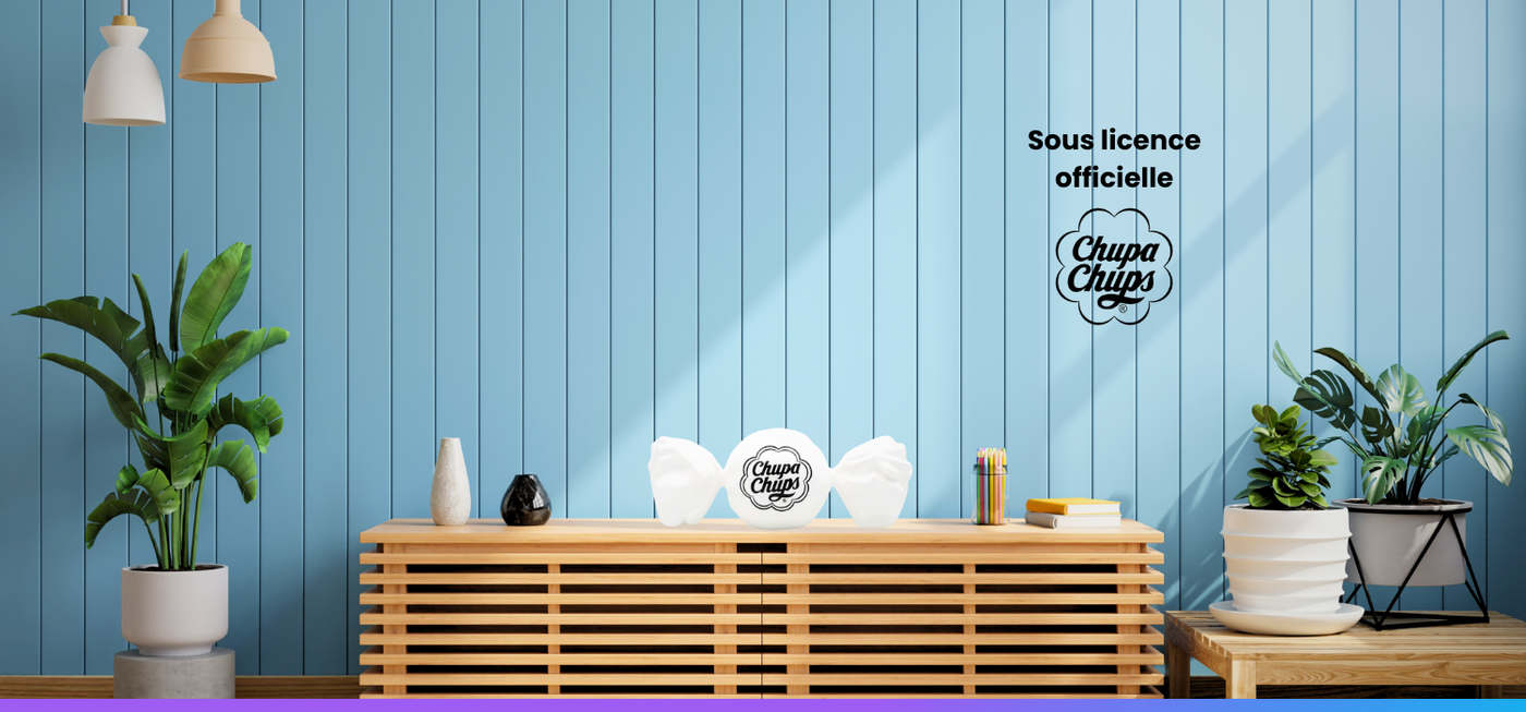 Vous aimez les couleurs et les œuvres de style pop-art ? Idéal pour décorer un loft ou tout projet de décoration, les sculptures Chupa Chups vous permettent de refaire la décoration sans effort. L’agence de décoration de la designer Julie Jaler, est la seule à posséder la licence Chupa Chups, la célèbre marque aux couleurs de notre enfance. Que ce soit une planche tendance de skateboard en guise de décoration murale ou le célèbre triptyque des sucettes iconiques, les créations Chupa Chups sont des éléments déco.