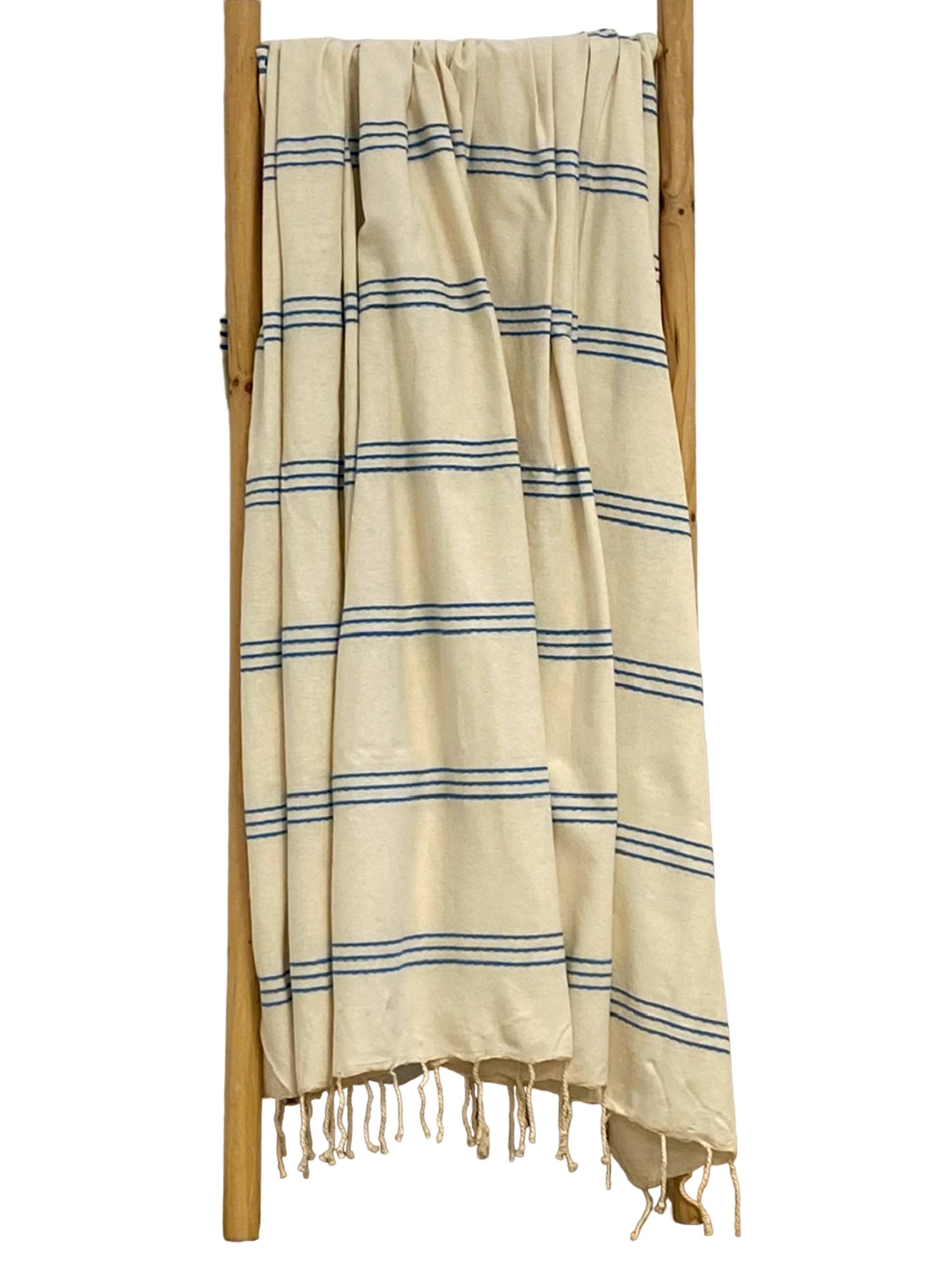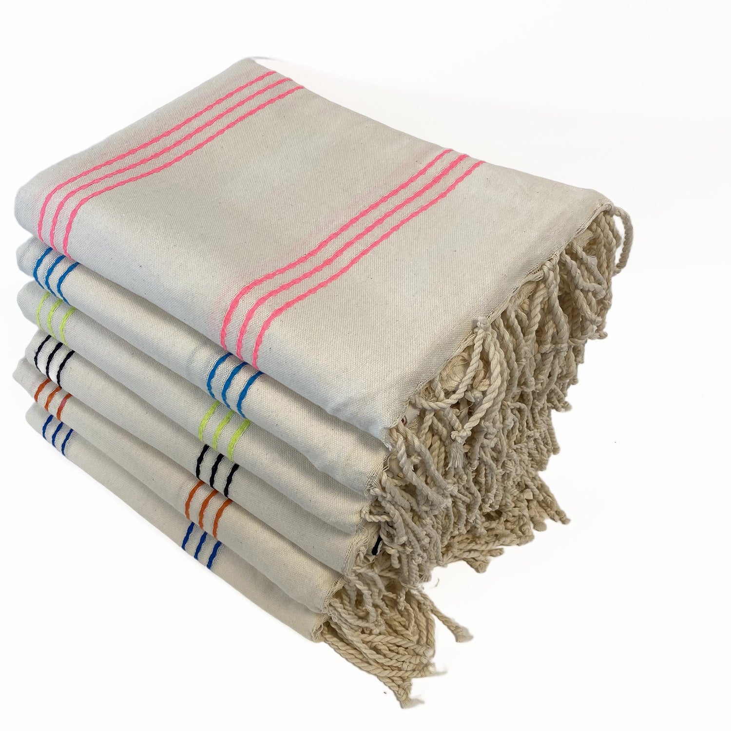 Cette fouta en coloris naturel est très tendance avec ses petites rayures couleur, cette collection est aussi bien adaptée pour homme que pour femme.