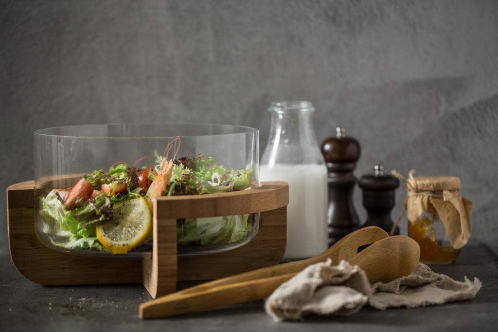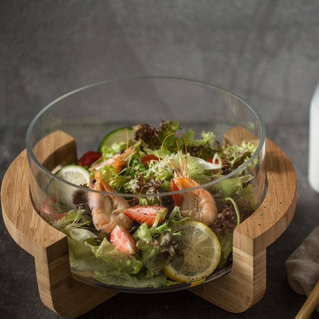 Saladier transparent support bois