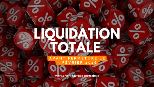 Du 7 janvier 8h au 3 février 2026 minuit, dans le cadre de la liquidation totale, profitez d'une vente à perte avant destruction des produits.
